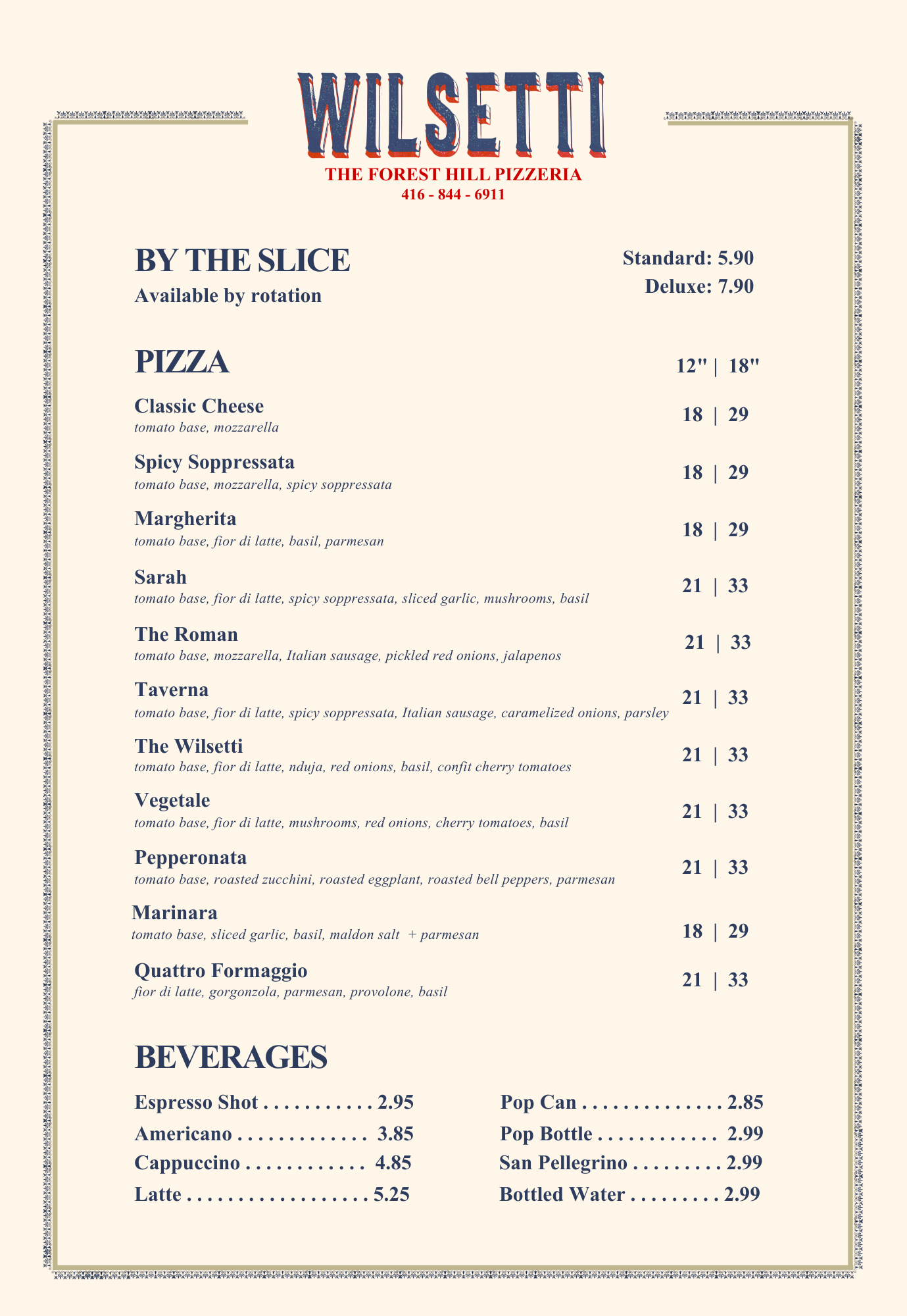 With uncompromising quality and a loyal following, Wilsetti is now re-open in the Forest Hill Village! Stop by at 396 Spadina Road for a slice, or place an order for a full pie here at Wilsetti.com.